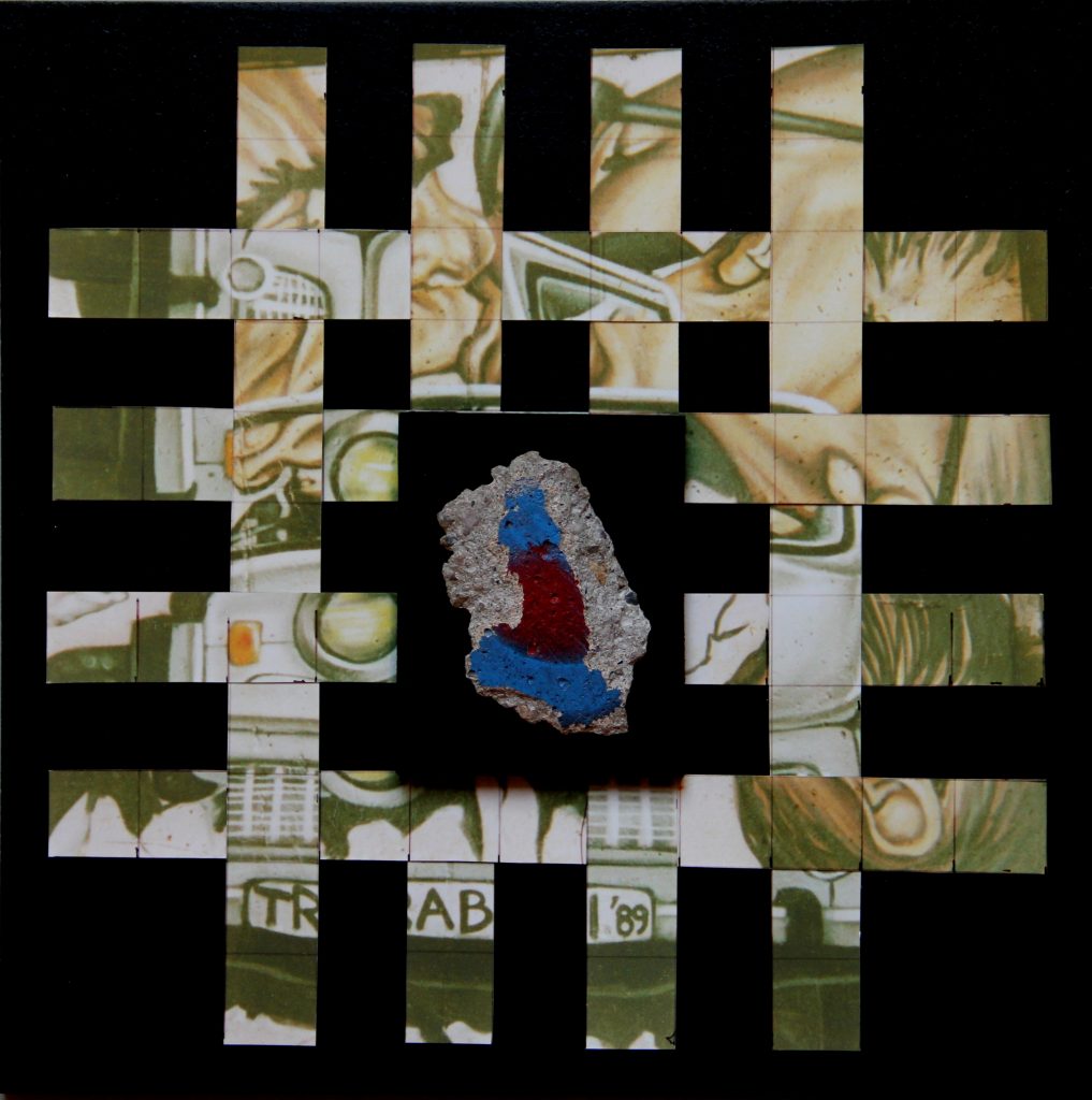 farbverändert, in 8 Streifen geschnitten und in Webtechnik geklebt,
