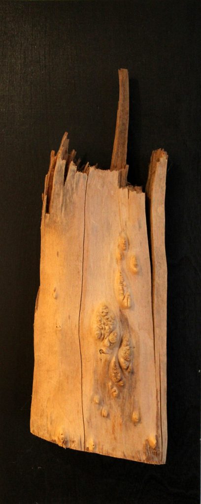 Nordpol Werk-Nr 2009-08, Assemblage Fundholz, naturbelassen,auf schwarzer Holzplatte befestigtGröße (B X H) 22,5 cm x 55 cmHolz (B X H) 15 cm x 44 cm Im Besitz der Künstlerin