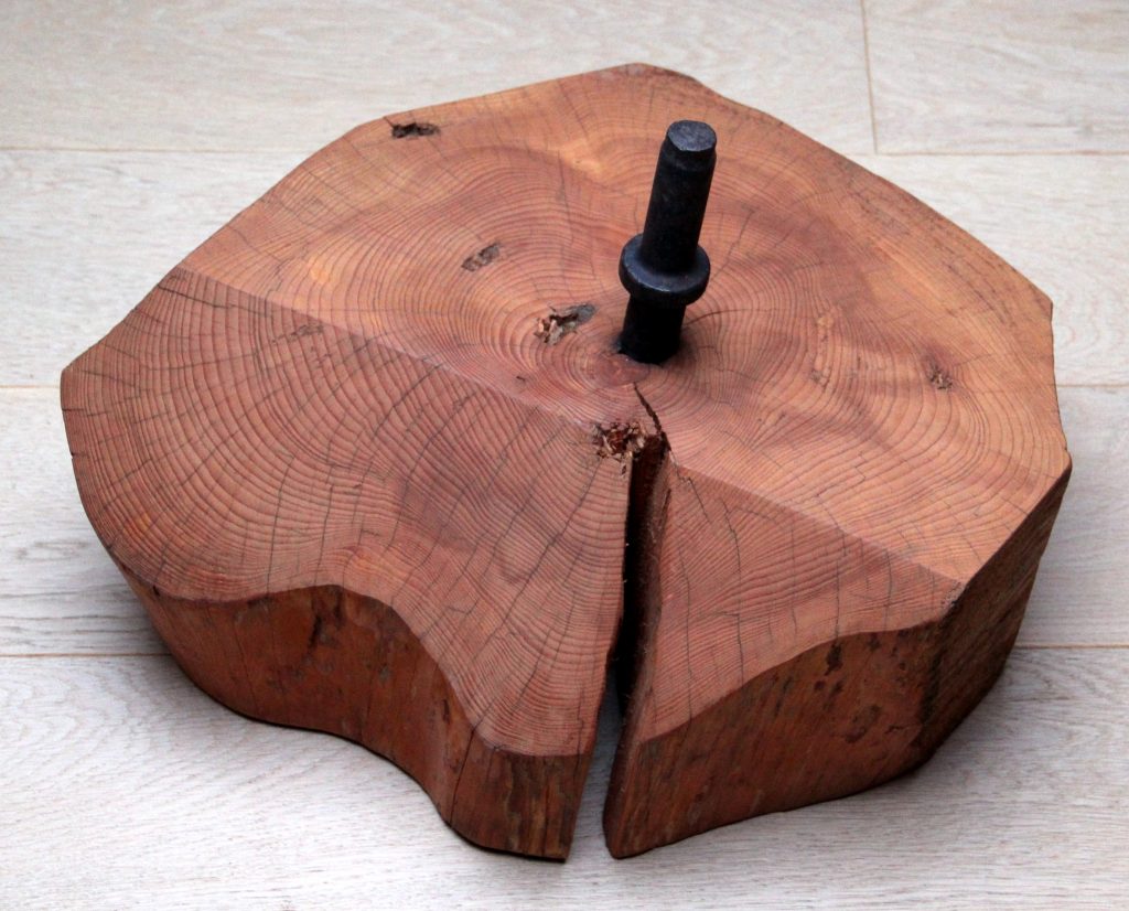 Spaltung Werk-Nr 2010-06, Skulptur Fundholz (Scheibe eines gefällten Baumes)geschliffen und gewachstGröße Durchmesser 40 cm, Höhe 20 cm Im Besitz der Künstlerin (unverkäuflich)