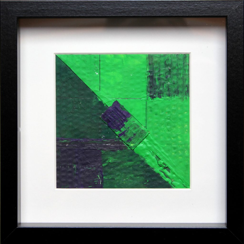 Farb-Abstraktion in Acryl, grün und blau auf Wellpappe,