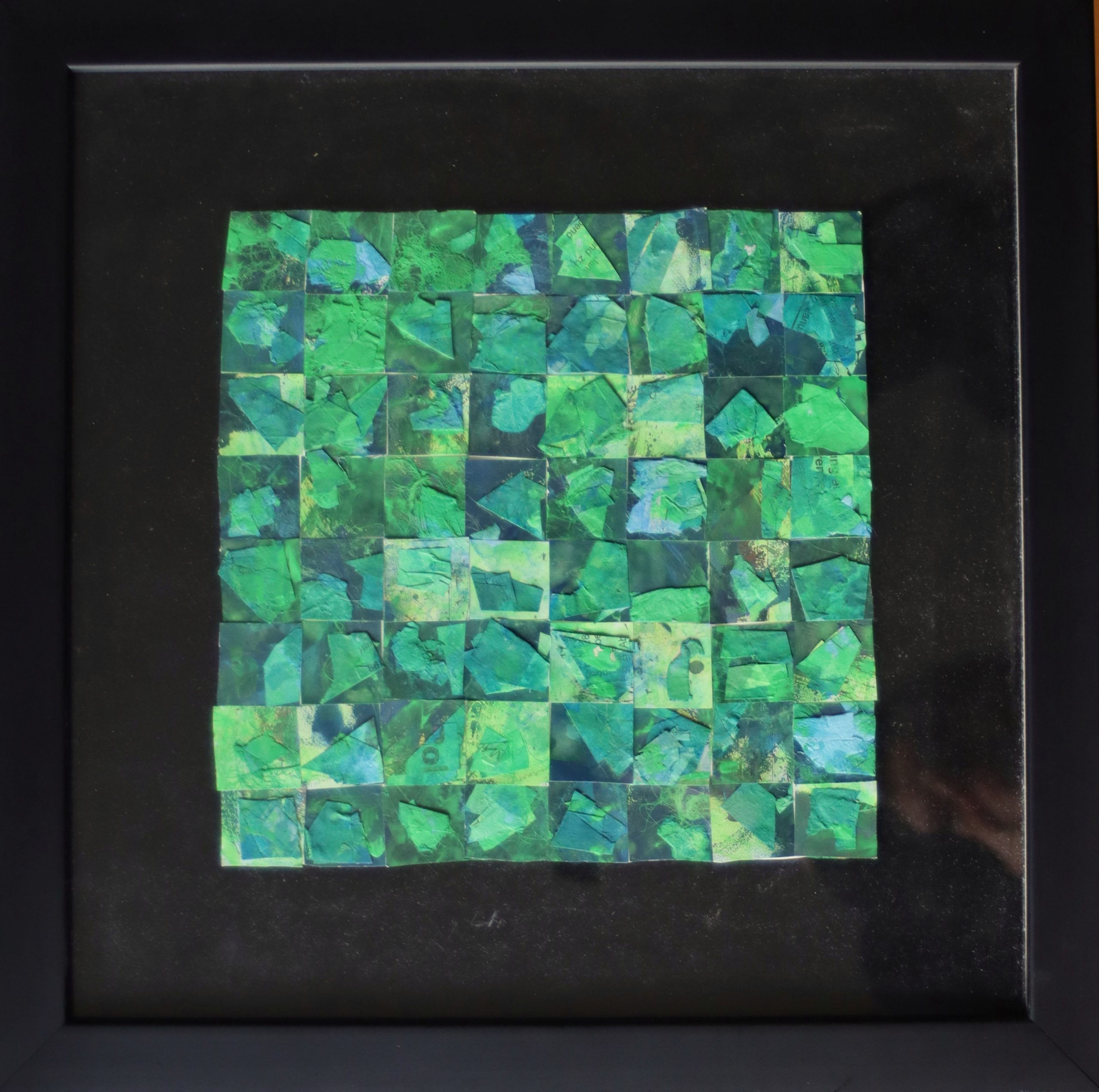 verpixelt und rekonfiguriert (8×8 Pixel a 2,5×2,5 cm), mehrfach überlagert und übermalt,