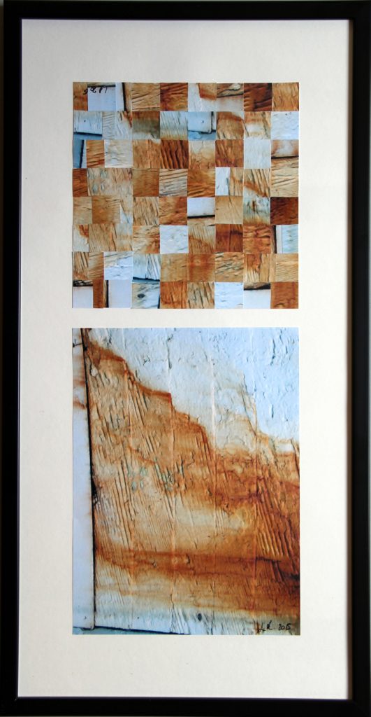 Detail-Foto vom Fisch-Kutter, Original (20×28 cm) und verpixelt rekonfiguriert (20×20 cm mit 8×8 Pixel a 2,5×2,5 cm),