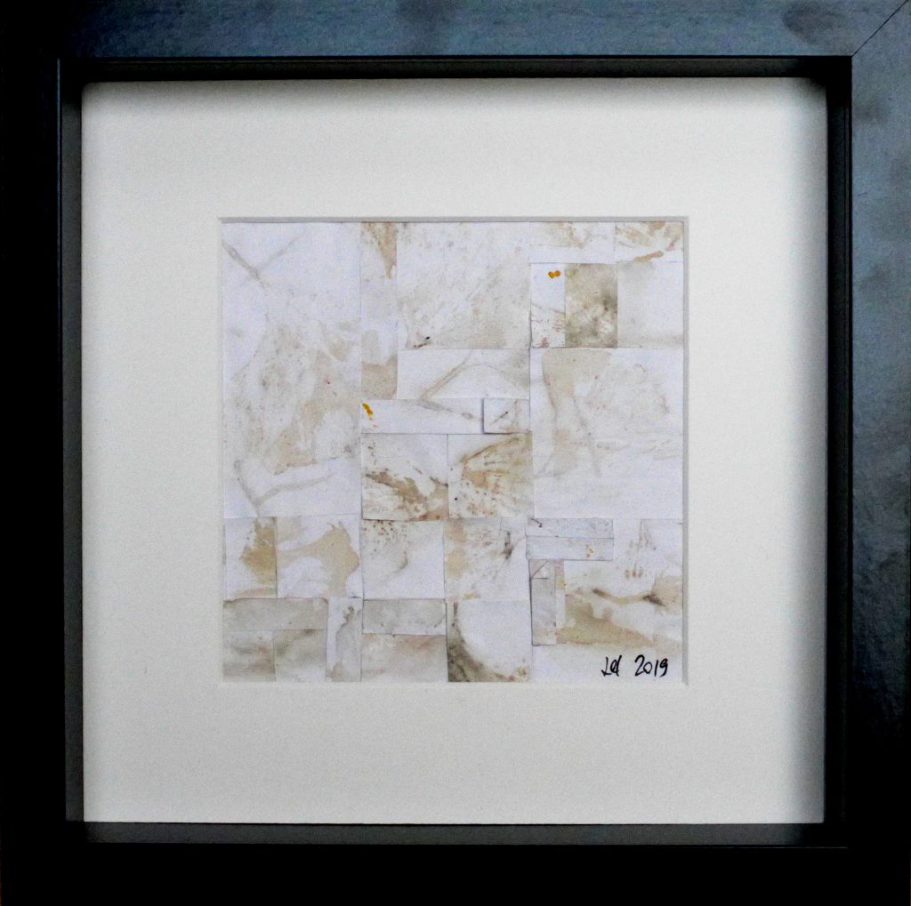 Abdruck von Herbst-Blättern vom Ginkgo-Baum, zerschnitten und rekonfiguriert (3×3 Pixel a 5×5 cm),
